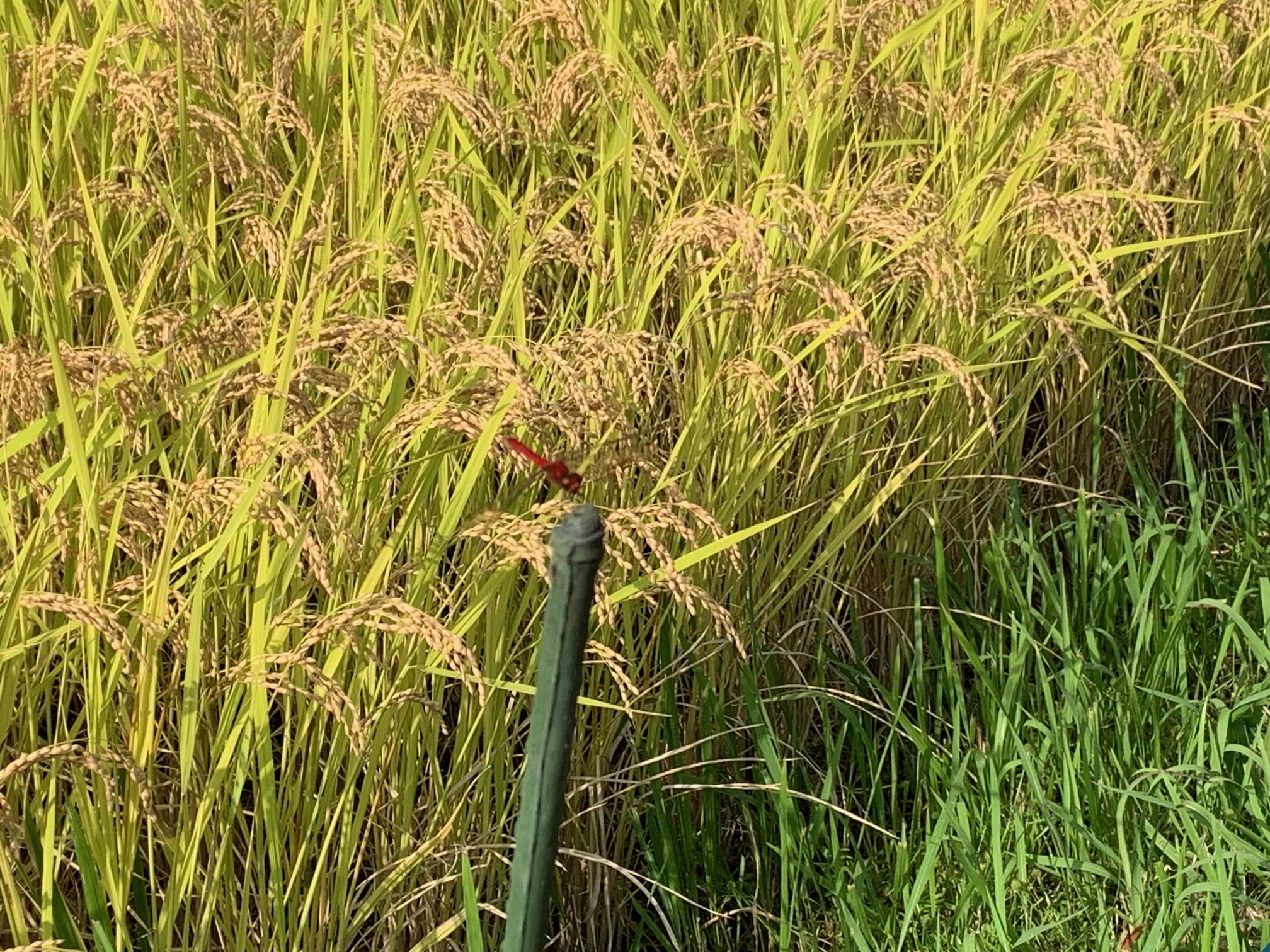 ほとんどの個体は稲穂の先端にとまり休んでいた。